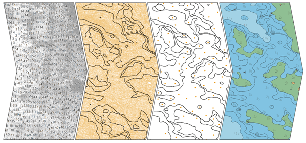 - Production of S-57 bathymetric ENCs in a matter of minutes, including the generalisation of isolines and the selection of soundings